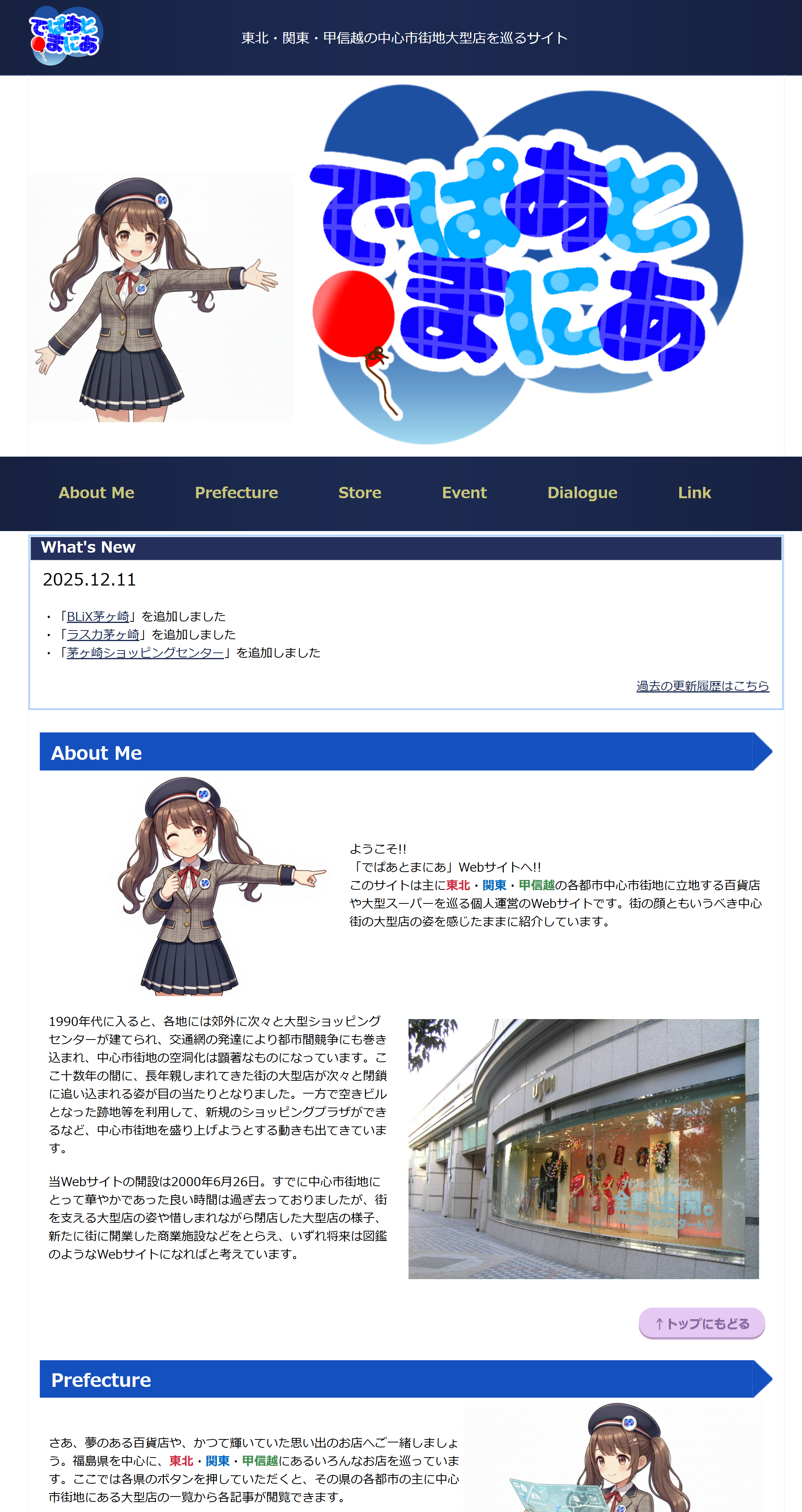 11月からは、困難なみちのりでもある「神奈川県」の公開も開始いたしました。「でぱあとまにあ」はこれからもさらなる進歩を目指し、個人運営のWebサイトでありながら、様々な方々の協力も得ながら、新しいわくわくへと、改めて新しい、大きな一歩を踏み出します!