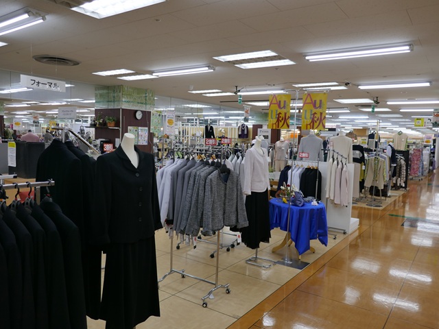 2階フロアはカネジョウデパートが営業。衣料品と寝具を主力に、多くのラインナップを展開している。