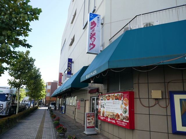 イルフプラザの側面。テナント縦看板に「夢のデパート カネジョウ」。夢のデパートはここにもあった。