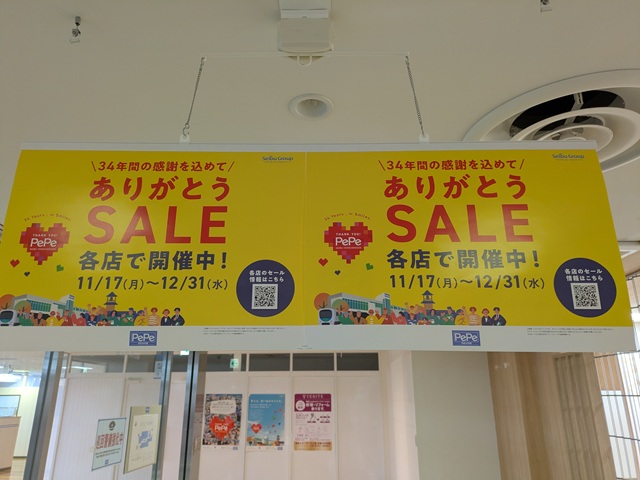 西武プリンスカウンター側の出入口。ありがとうSALEの装飾がなされている。