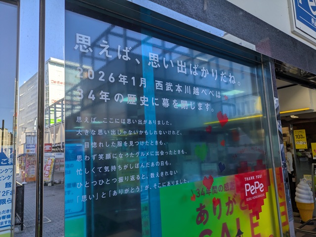 西武本川越ペペは、2026年1月13日の営業をもって、営業終了となりました。