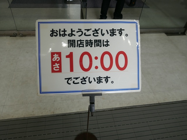 開店時間の告知! 今日からお店が開くのです。営業再開に至るまで、店員さんはじめ、関係者の皆さんの苦労や努力は相当のものであったのだろう。