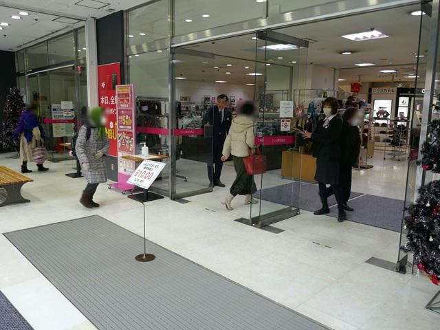 開店時間が近づき、三日町側入口の扉を開ける店員さん。エントランスには、買い物客が待ちわびていた。
