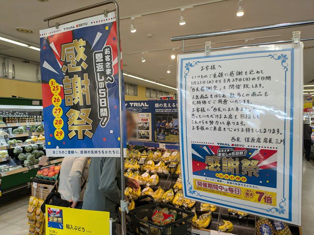 西友保原店店長からのメッセージが掲載されていた。西友感謝祭開催中! 「西友にまた来よう」