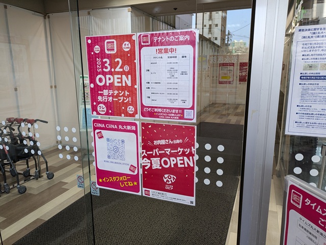 2025年1月25日のイトーヨーカドー丸大新潟店が営業終了し、古町(本町)周辺の大型店の閉鎖で空洞化が懸念されましたが、かねて発表のとおり後継店舗として「CiiNA CiiNA 丸大新潟」が2025年3月2日に先行オープンしました。塔屋にも屋号にも「丸大」という歴史ある名称が継承されています。2025年4月18日にお買い物。。