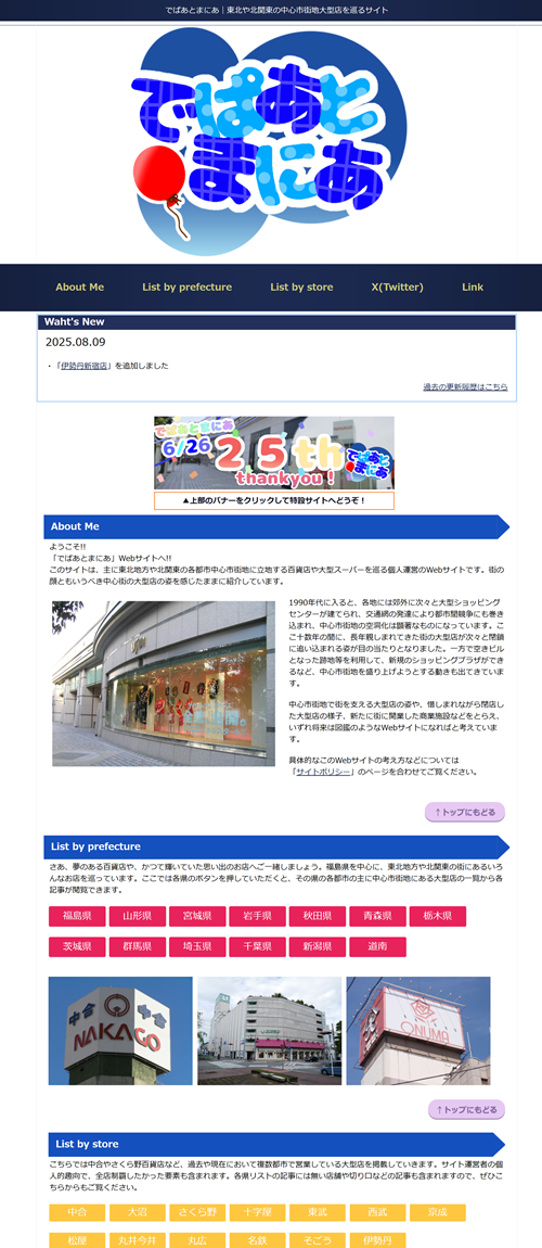 来年はいよいよサイト開設から四半世紀を迎えます。サイト運営者の人生も、当サイトとともに歩んできっといっても過言ではありません。それだけ、当サイト運営に、百貨店に、今まで巡ったいろいろな街に思い入れがあります。