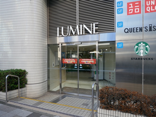 ペデストリアン直結のルミネ藤井3階入口。やや丸みを帯びたドアーが買い物客を招き入れる。