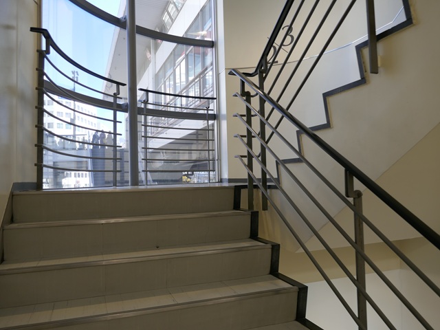 そこから入ると、エレベーターと階段。階段は3階まで無味乾燥な雰囲気で上ることになる。ドラゴンクエストⅢの塔か。