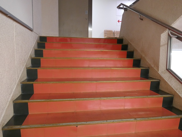 最後に上る赤階段。1歩1歩、中合の思い出とともに。