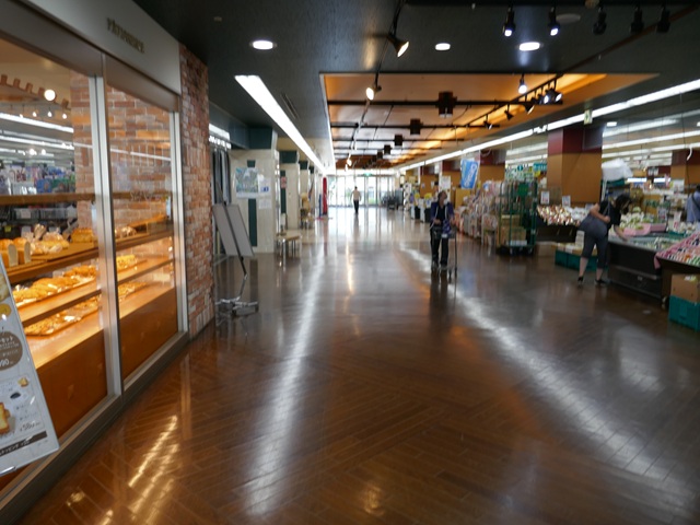 1階中央通路を挟んでベーカリーやスーパーマーケットの売場が並んでいる。