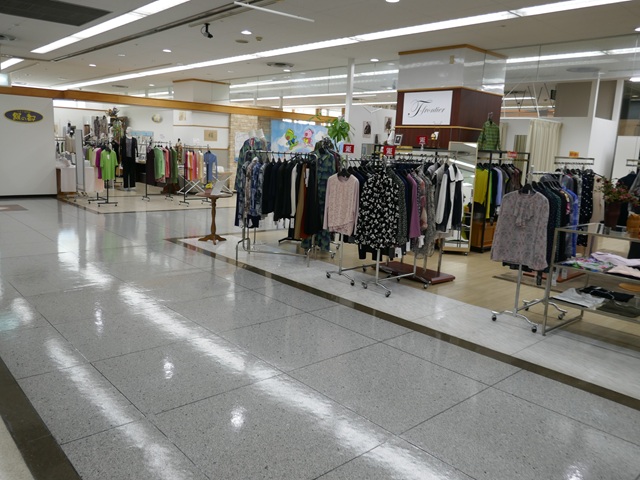 2階フロアはカネジョウデパートが営業。衣料品と寝具を主力に、多くのラインナップを展開している。