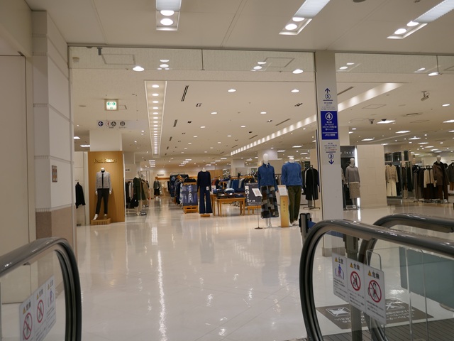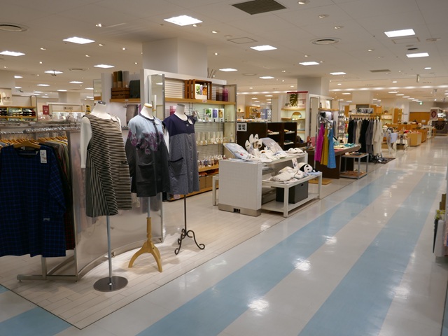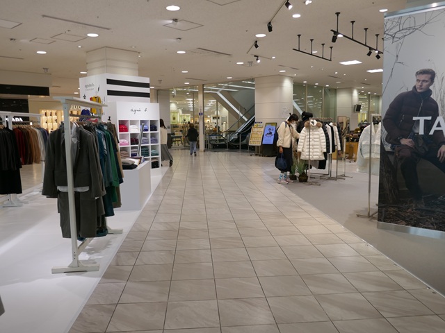 2階フロア、正面入口から入るとデパート大通り館ある通路。婦人服飾雑貨や、GUCCIなどといったハイブランドのフロアでもある。
