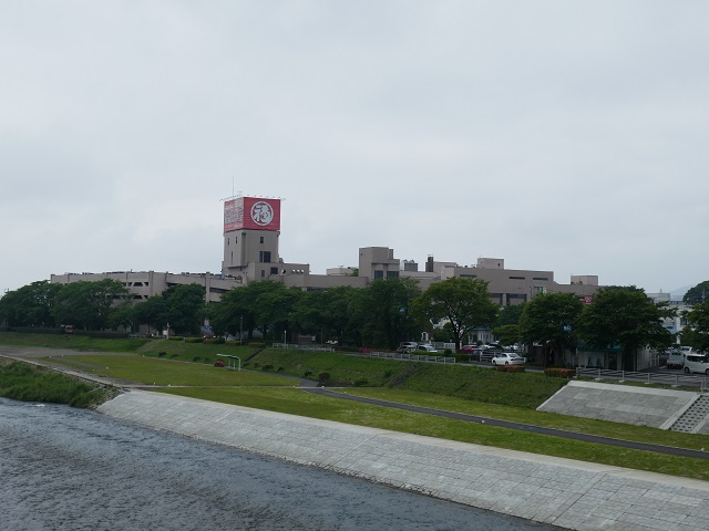 府中橋から望む福田屋百貨店鹿沼店全景。