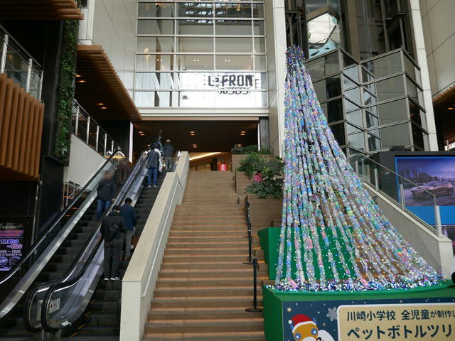 川﨑ルフロンのエントランスには都市型百貨店の匂いが残る。小学生たちが作成したツリーが華を添える。