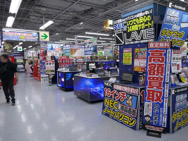 川崎ルフロンの核テナント、ヨドバシカメラ。地階から4階までの売場を占めている。1階にはスーパーのライフ、2階は「FOOD VILLAGE」と銘打った飲食店街が並んでいる。3階にはワークマン女子や、中合福島店にもあった「シューラルー」も。