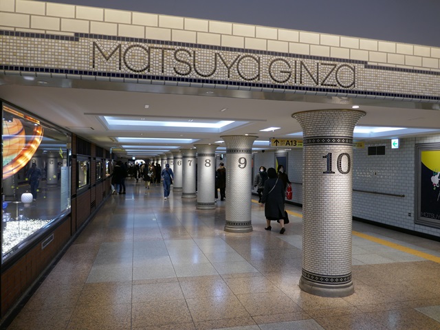 こちらは東京メトロ銀座線銀座駅の地下コンコース。A12/A13出口方面へはもう松屋銀座ゾーンとなっている。
