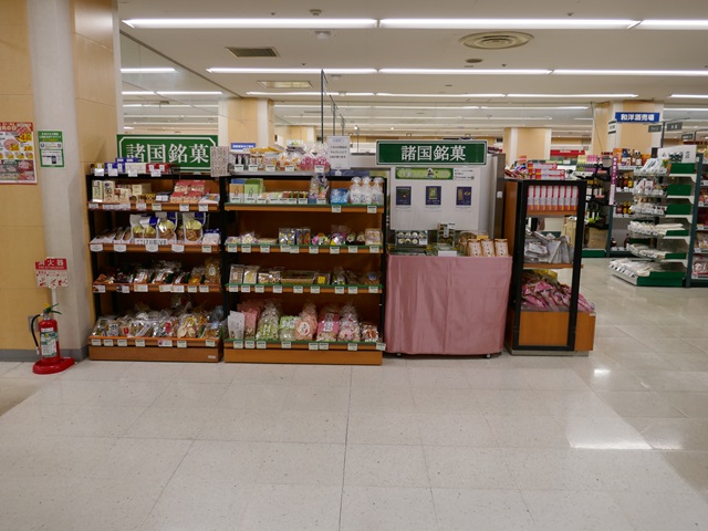 地階はデパ地下食品売場。地元銘菓をはじめ、全国有名銘菓や諸国銘菓も扱っている。スーパーのコーナーには埼玉県をはじめとしたお煎餅一押しコーナーが設けられていた。それらのお煎餅を全銘柄買い求めてお土産にするのも一興かと(やりませんでしたが)。