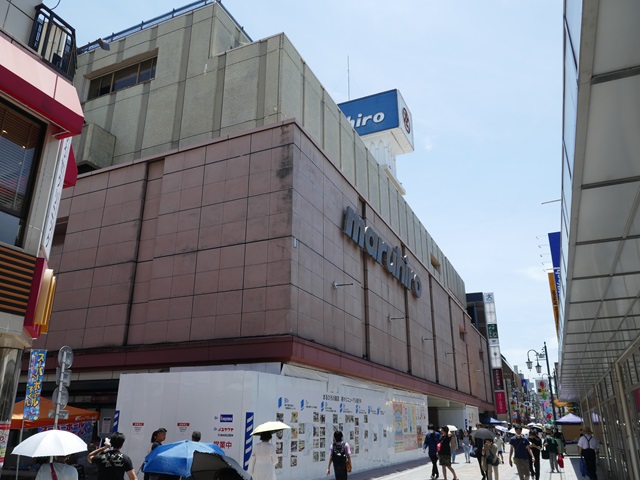 丸広百貨店川越店。川越市の商業メインストリート、クレアモールに別館とともに覆いかぶさるように位置している。この周辺が本館やアネックス館で囲まれた丸広百貨店ゾーンとなっている。2024年7月27日にお買い物。
