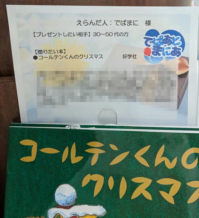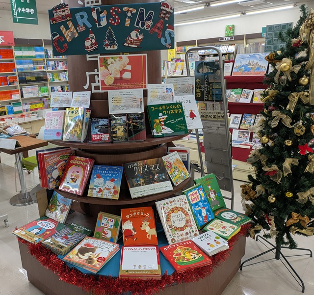 「あなたがえらぶプレゼントブックフェア ~クリスマスにプレゼントしたい本 ~」のコーナーが展開されています。読者がクリスマスに「誰に」贈りたいか、その理由がPOPされています。いろんな方が様々な立場で贈りたい相手を想って本を選んでいます。ぜひ、本を手にとって見てみてください。