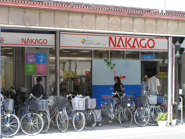 アーケードに面した入口。こぢんまりとしながらも、ショーケースが百貨店を彩る。若松の「NAKAGO」の灯も、もうすぐ消えてしまうのか...
