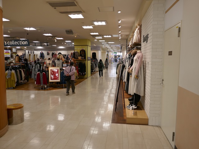 1階は婦人服を中心に和菓子屋や茶舗、ベーカリーなどが営業している。