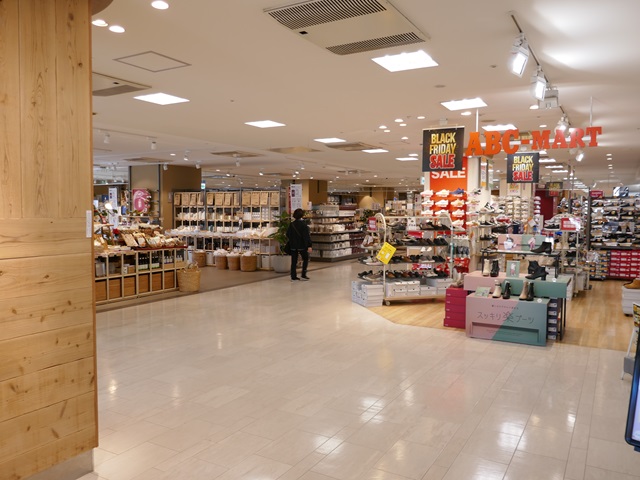 2階フロアはABCマートや無印良品、婦人服や化粧品の売場がある。