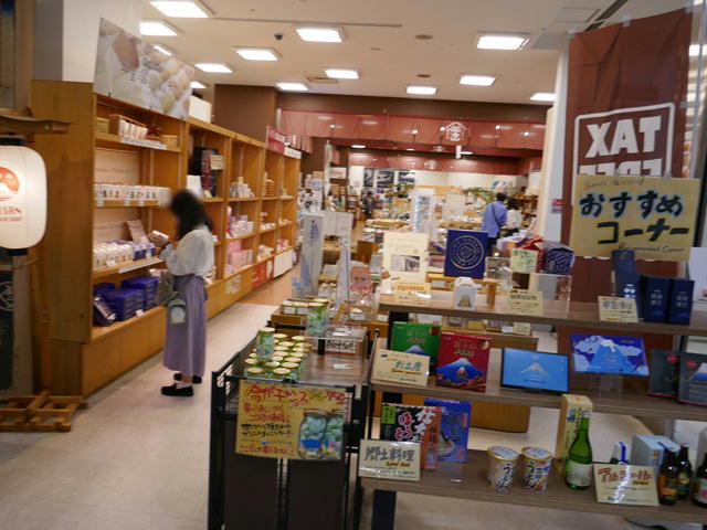 1階には富士山観光ならではのお土産品コーナーも営業している。「富士山」をあしらった器や菓子類、酒類など目移りしてしまう。