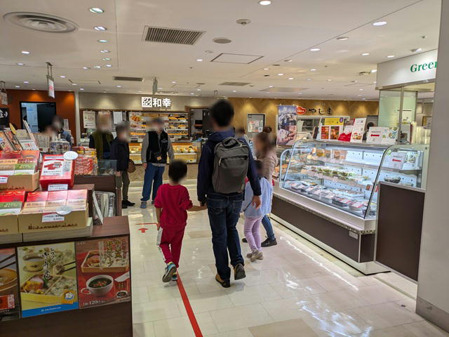 JR茅ヶ崎駅の改札階にあるラスカ茅ヶ崎店舗入口。改札から出てきた買い物客が続々と店に入っていく。