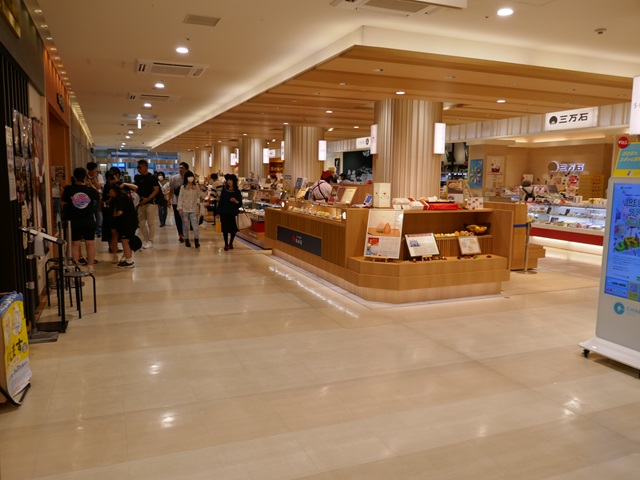 1階フロアには銘店街や食料品コーナーが並ぶ。萩の月の三全や、FLOが営業しているのもうれしい。その他、レストランや薬局なども営業している。