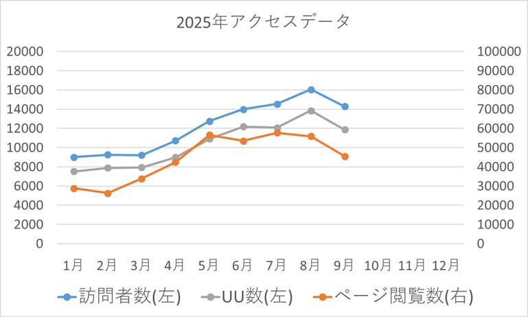 9月は更新回数が2回と活動停滞。各指標とも前月比80%と減少に転じています。なかなか活動やテーマが進まないシーズンであったためですが、今後もマイペースで継続してまいります。